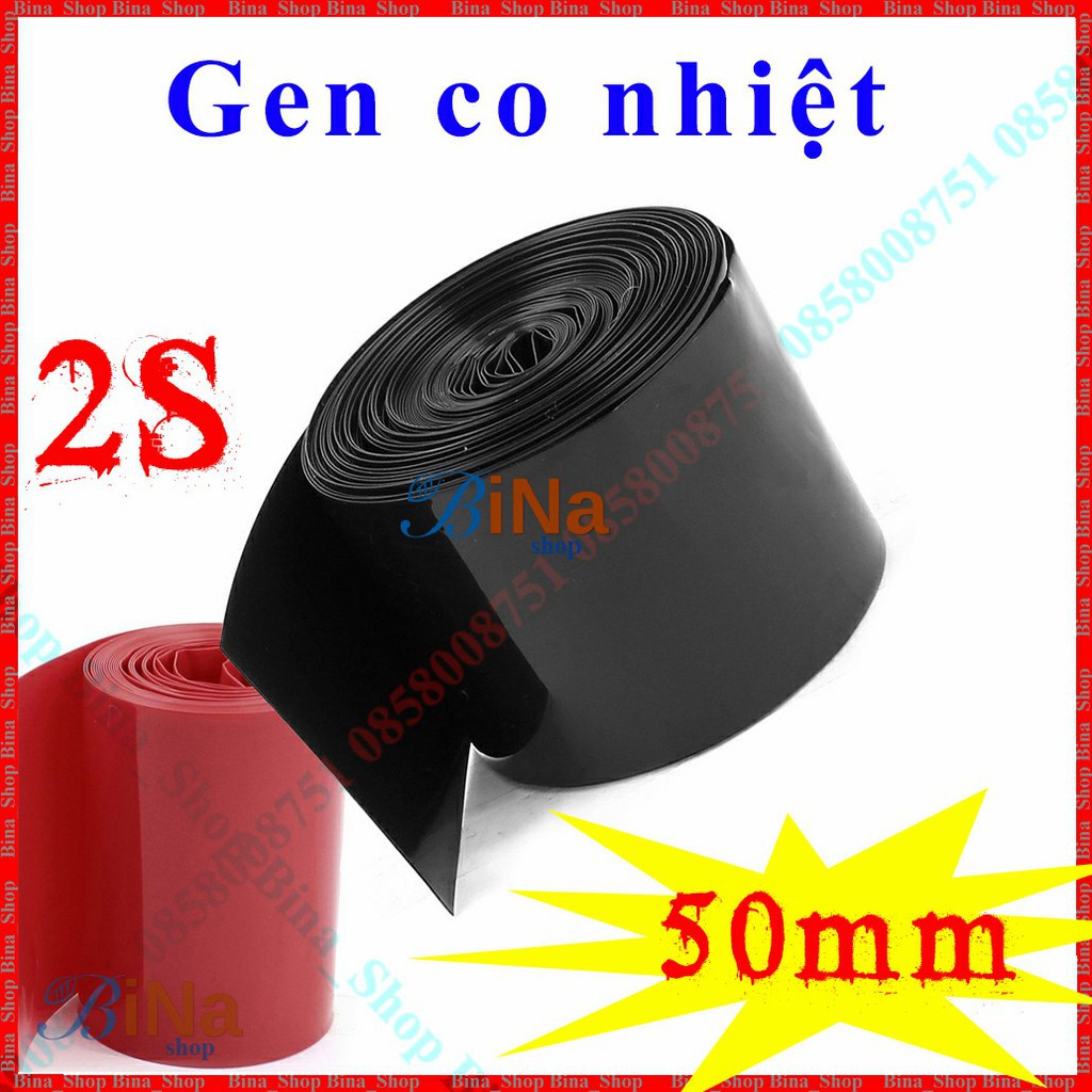 Giới thiệu [1 Mét] Màng co nhiệt 2S 18650 rộng 50mm đỏ / đen