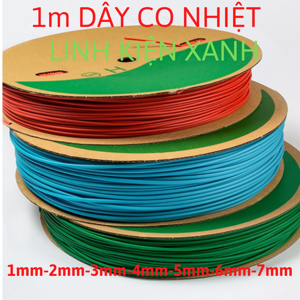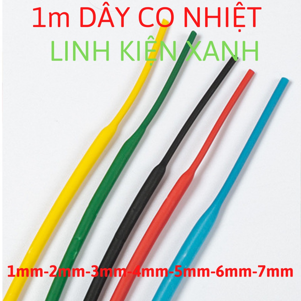 [1 mét] Ống dây gen co nhiệt cách điện màu xanh-đỏ-vàng-đen-trắng đủ kích thước từ 1-2-3-4-5-6-7mm