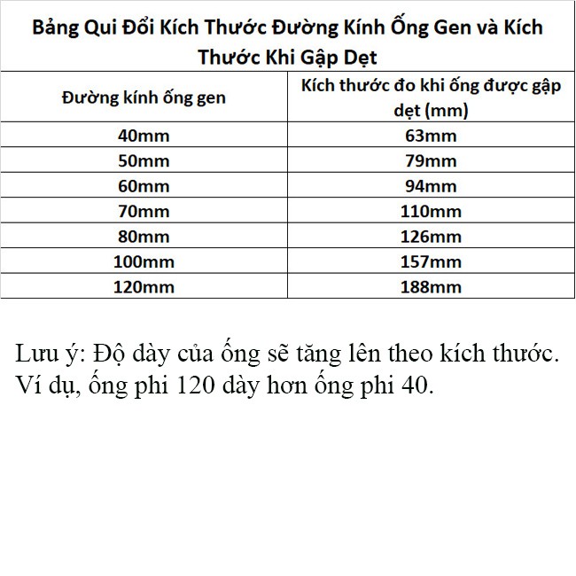 - Ống gen có thành ống càng dày khi kích thước càng lớn. Ví dụ, ống gen 120mm sẽ dày hơn ống 80mm và 80mm sẽ dày hơn 40mm.