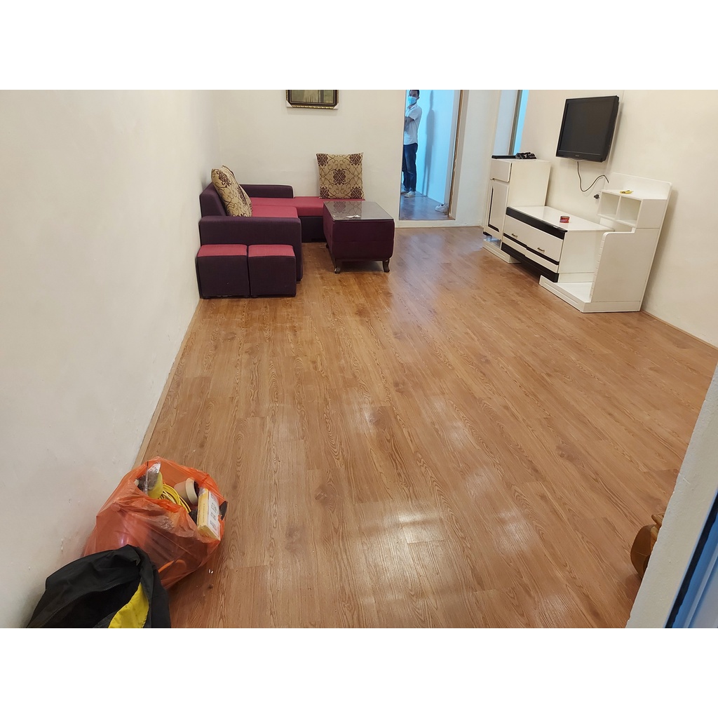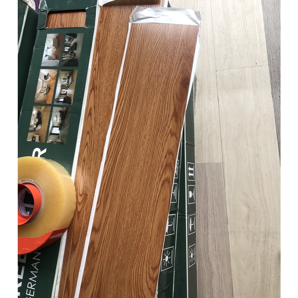 Sàn đã có sẵn keo dán 3 lớp. Chỉ cần bóc và dán, rất đơn giản..