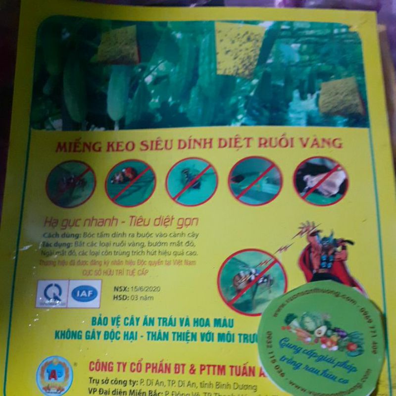 công dụng băt các loài ruồi vàng, b.ướm mắt đỏ, Ngìa, Côn trùng hút chích hiệu quả cao, an toàn, thân thiện môi trường, màu vàng hiệu quả cao khi bẫy, keo dùng lâu có thể treo trong thời gian dài
