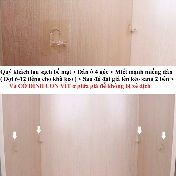 +++ KHUYỄN NGHỊ : Theo kinh nghiệm sử dụng sp giá chia ngăn , Quý khách nên kết hợp vừa dùng 4 miếng dán này dán 4 góc bên dưới giá kệ ( theo tờ hướng dẫn đi kèm và dán theo chiều chữ L hướng xuống dưới như ảnh sp ) + vẫn lắp giá chia ngăn theo video hướng dẫn => Mức chịu lực sẽ tăng đáng kể và cũng dễ lắp hơn với những giá to cồng kềnh như 75-120 rộng 42 .