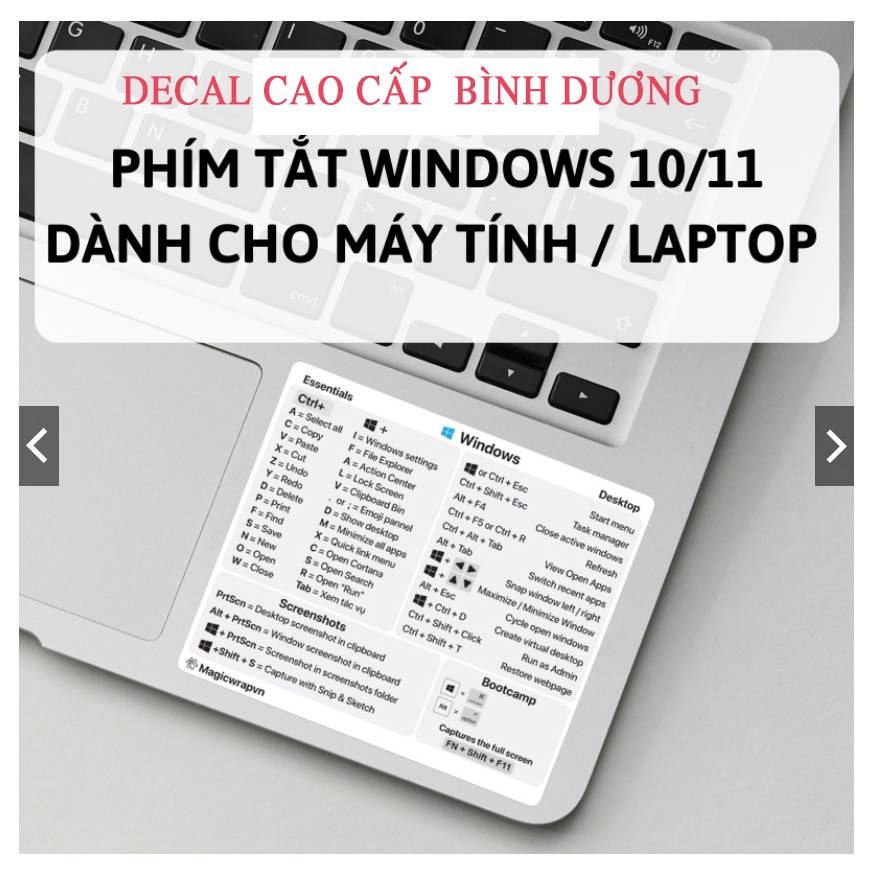 Giới thiệu 1 Miếng Dán phím tắt Windows 10 / 11 dán laptop | Có bootcamp | Magicwrapvn | Cho mọi laptop. Sticker phím tắt