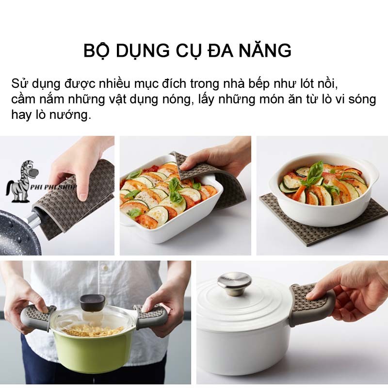 Sử dụng được nhiều mục đích trong nhà bếp như lót nồi , cầm nắm những vật dụng nóng , lấy những món ăn từ lò vi sóng hay lò nướng.
