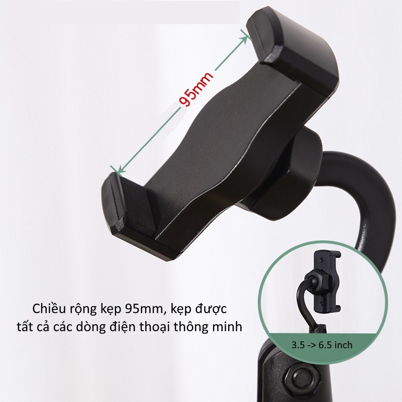 - Kích thước giá đỡ: co giãn linh hoạt từ 6,5cm đến 9,5cm