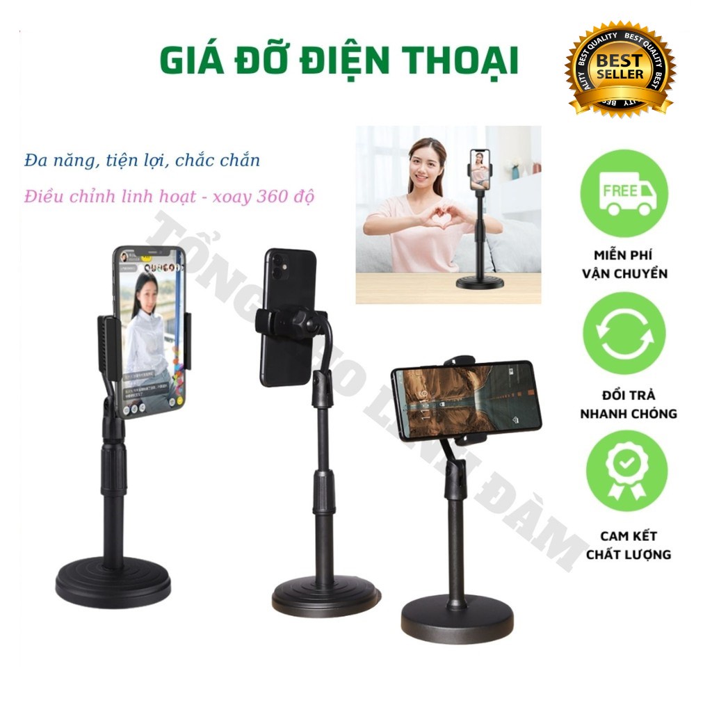 "Đế Loại 1 nặng 360g" Giá đỡ điện thoại Livestream để bàn, kẹp chống lưng xoay 360,chân đế tròn để bàn, giá đỡ học tập