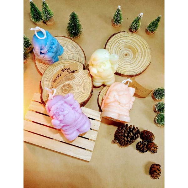 Nhà cửa & Đời sống > Trang trí nhà cửa > Nến & đồ đựng nến || 1 Nến Ông già Noel Giáng Sinh nhiều màu Tim Cotton không khói cao 6cm - 9293store - 9293decorcandleCòn hàng