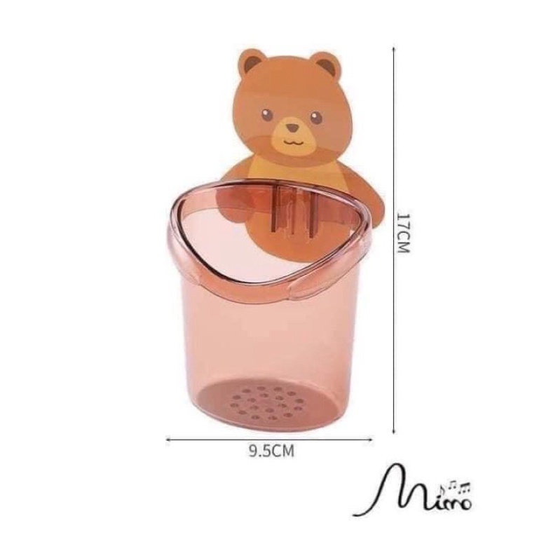 Cốc gấu dán tường đựng bàn chải và kem đánh răng bằng nhựa cao cấp dễ thương