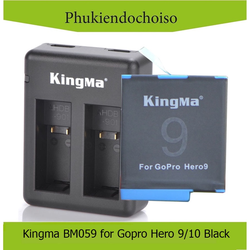 Bộ sản phẩm gồm: 1 pin và 1 sạc đôi BM059 cho Gopro Hero 9/10 Black- Thương hiệu: KingMa