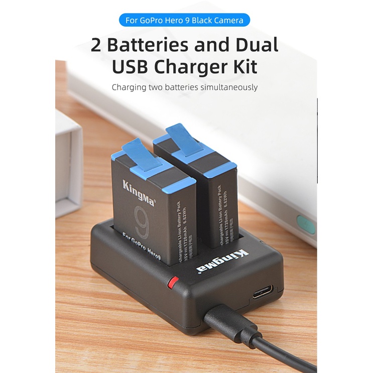 Cameras & Flycam > Phụ kiện máy ảnh > Bộ sạc pin || Bộ 1 pin 1 sạc đôi Kingma for GoPro Hero 9 Black, Hero 10 Black BM059-GP9 KitCòn hàng
