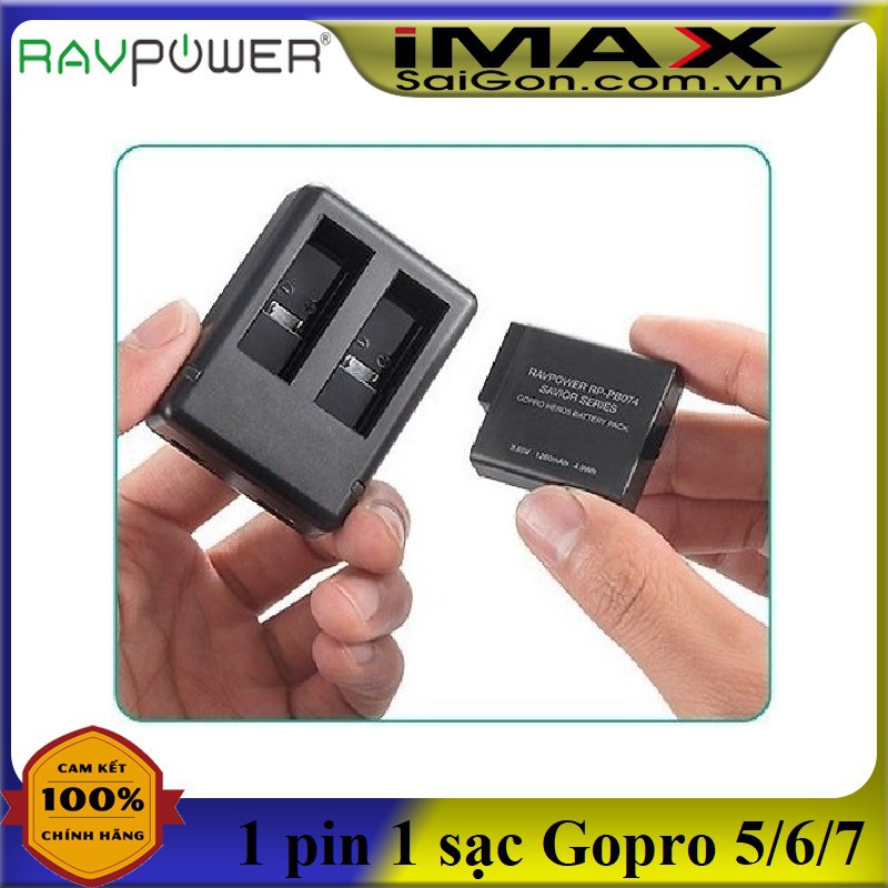 Cameras & Flycam > Phụ kiện máy ảnh > Đế pin || 1 PIN 1 SẠC ĐÔI RAVPOWER CHO GOPRO 5,6,7Còn hàng
