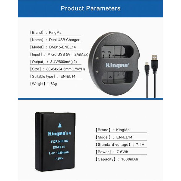 Giới thiệu Bộ 1 pin 1 sạc Kingma cho Nikon EN-EL14 + Hộp đựng Pin, Thẻ nhớ