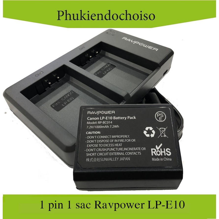 Bộ 1 pin 1 sạc máy ảnh Ravpower cho Canon LP-E10