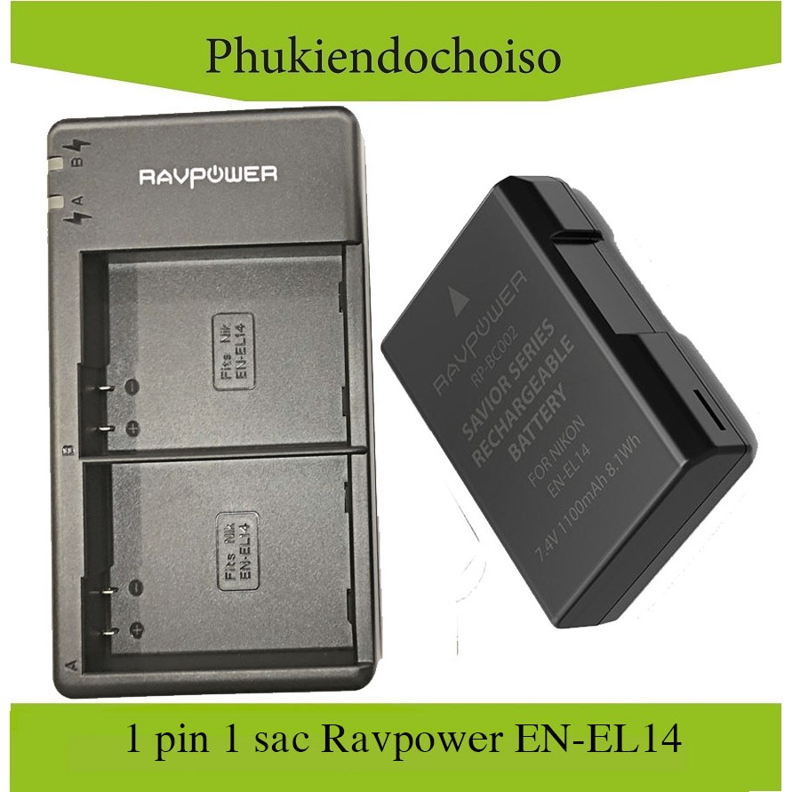 Bộ 1 pin 1 sạc máy ảnh Ravpower cho Nikon EN-EL14