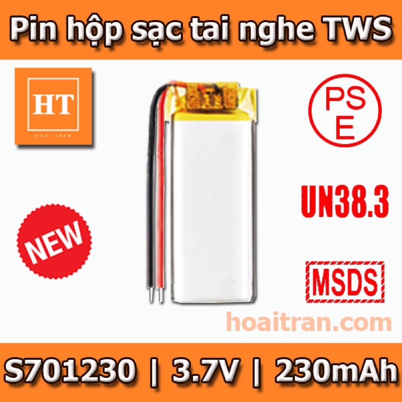 [Loại 1]Pin Li-Po 3.7V 701230 230-250 mAh (Lithium Polyme) cho hộp sạc tai nghe Bluetooth