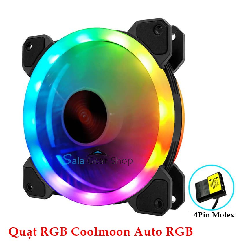 Máy tính & Laptop > Linh Kiện Máy Tính > Quạt và Tản Nhiệt || 1 Quạt Tản Nhiệt Coolmoon R, Auto RGB 4Pin Molex, 2 Vòng LedCòn hàng