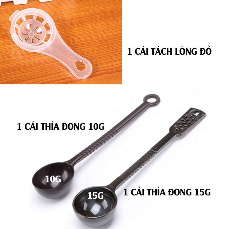 Giới thiệu 1 Tách lòng đỏ trứng + 1 thìa đong 10g + 1 thìa đong 15g