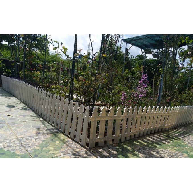 Hàng rào nhựa có vân gỗ nhẹ bằng nhựa mềm, màu trắng có thể lắp ráp linh động khi sử dụng.