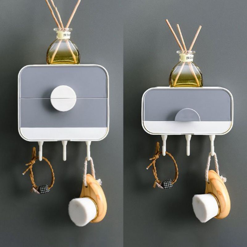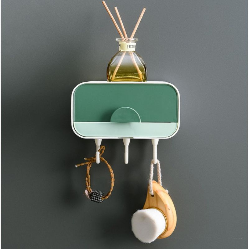 Tên sản phâm : Hộp xà bông 2 tầng có móc treo đa năngHộp để đồ nhà tắm 2 tầng, hộp đựng giấy vệ sinh, xà bông xà phòng có móc treo tiện lợi