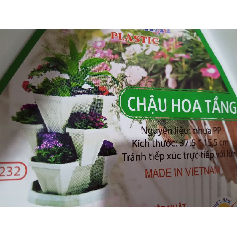 1 tầng Chậu nhựa tam giác Trắng_Chậu tầng_Chậu tháp trồng hoa, rau cây cảnh- kích thước : rộng 37cm. cao 15.5cm