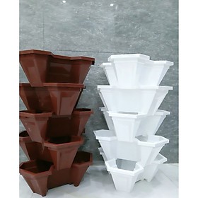 Nhà cửa & Đời sống > Làm vườn > Chậu cây || 1 tầng Chậu nhựa tam giác_Chậu tầng_Chậu tháp trồng hoa, rau cây cảnh tiện lợi trắng, nâuCòn hàng