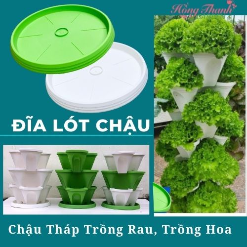 Lưu ý: tháp trồng rau không kèm đĩa lót chậu hoặc kèm đĩa lót chậu (tùy chọn)