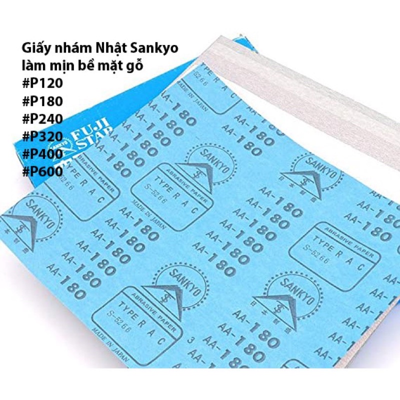 Giấy nhám hay còn gọi là giấy ráp là một loại giấy được sử dụng để làm mịn bề mặt gỗ.Giấy nhám Sankyo (Fuji Star) được cấu tạo nên bởi 3 phần gồm: hạt nhám, keo dính, lớp lưng bằng giấy