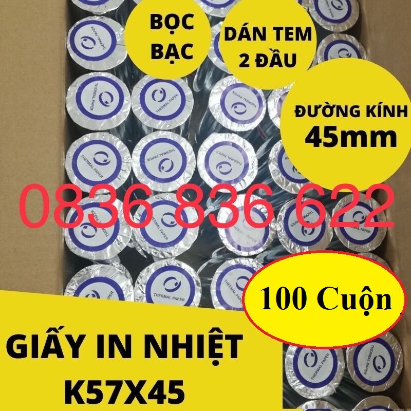 [ 1 Thùng giấy 100c ] Giấy in nhiệt, giấy in hóa đơn k80 x 45 và k57 x 45