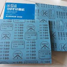 Nhà cửa & Đời sống > Dụng cụ & Thiết bị tiện ích > Dụng cụ > Giấy nhám, máy chà nhám và phụ kiện || 1 tờ giấy nhám Nhật xanh xả tường Sankyo AA180, AA240Còn hàng