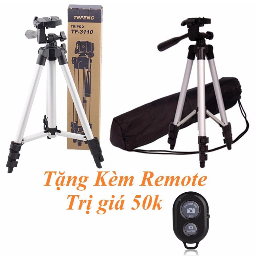 Tên sản phẩm: Bộ 1 Tripod TF-3110 kèm 1 Giá đỡ điện thoại ( tặng 1 Remote điều khiển từ xa)- Bộ sản phẩm bao gồm: