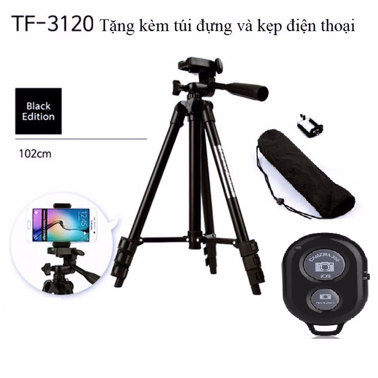Tên sản phẩm: Bộ 1 Tripod TF-3120 kèm 1 Giá đỡ điện thoại và 1 Remote (Tặng Giá Đỡ Bạch Tuộc Đa Năng)- Bộ sản phẩm bao gồm: