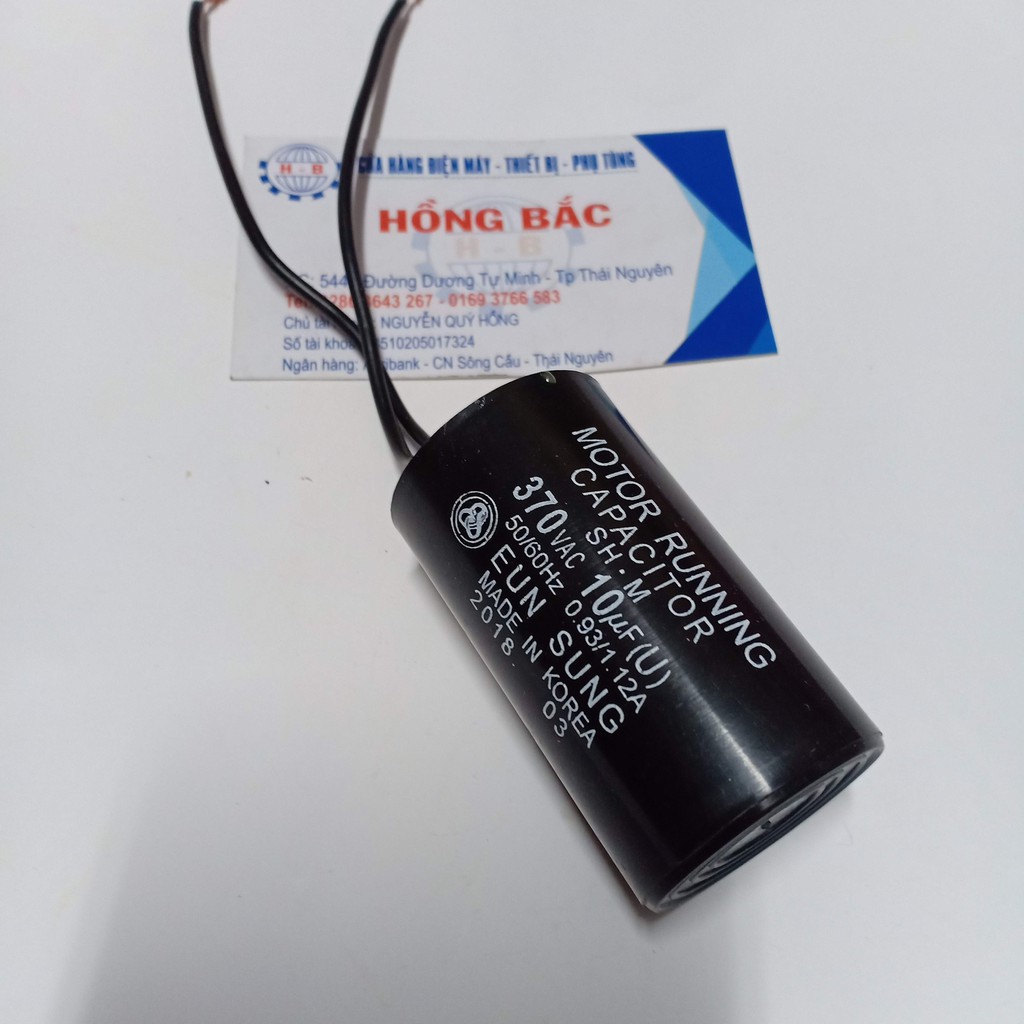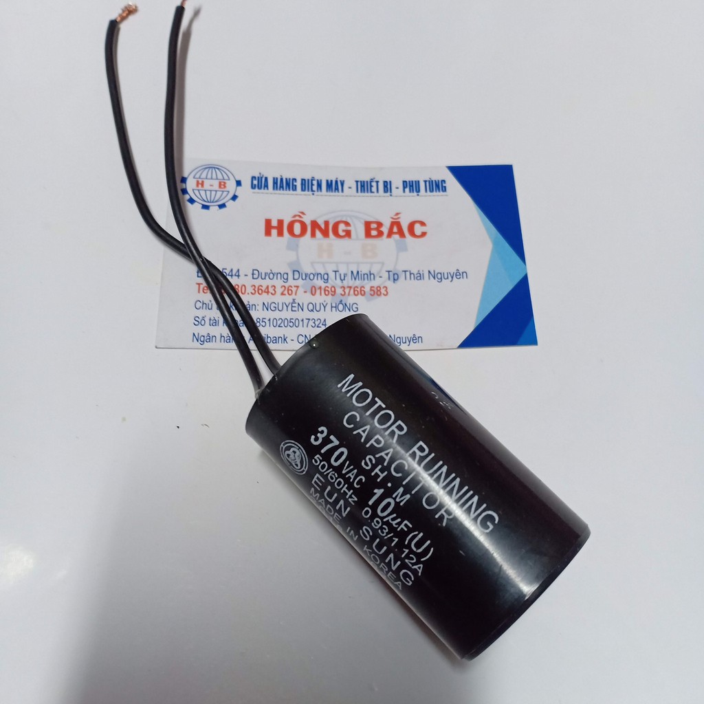 01 Tụ điện 10 MF đen loại tốt dùng cho bơm nước và thiết bị điện khácĐiện Máy Hồng Bắc là nhà phân phối phụ tùng Điện Cơ uy tín, cam kết cung cấp các phụ tùng chất lượng tốt, với giá thành hợp lý.
