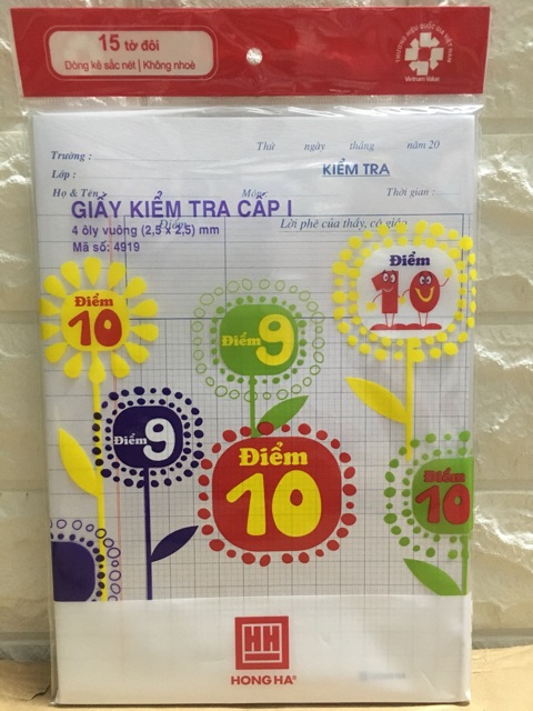 Văn Phòng Phẩm > Sổ & Giấy Các Loại > Giấy In || 1 túi giấy kiểm tra Điểm 10 Hồng Hà -4 ly ( loại 1 túi /15 tờ đôi )Còn hàng