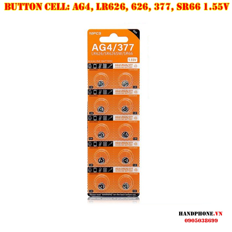 1 vỉ 10 viên pin cúc áo 1.5V AG4, LR626, 377, 626, SR66 Pin Kẽm, Mangan, Alkaline Battery cho Đồng Hồ, Máy Tính