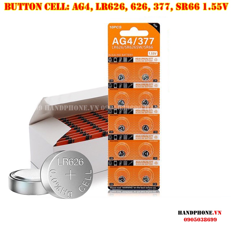 Pin cúc áo AG4, LR626, LR66, 626 sử dụng cho: đồng hồ điện tử, các thiết bị điện, điện tử, đồ chơi v,v...
