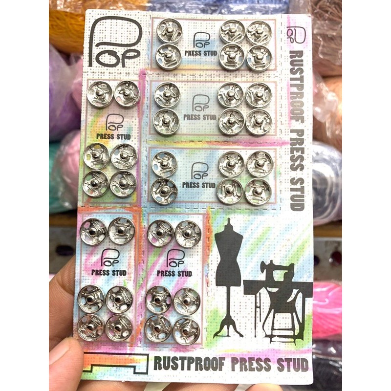 Sở thích & Sưu tầm > Dụng Cụ May Vá || 1 vỉ 36 cái nút bóp tốt hiệu POP cỡ lớn 10mmCòn hàng