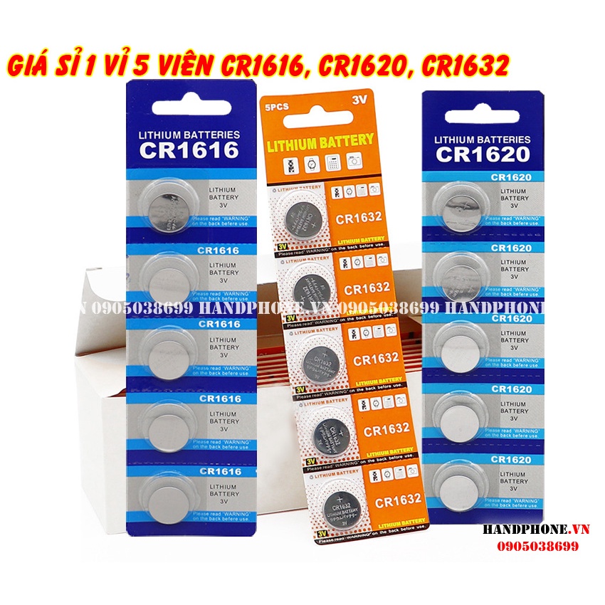 1 vỉ 5 viên pin cúc Lithium 3V CR1220 CR1632 CR1620 CR1616 pin nút cho điều khiển, chìa khóa ô tô, xe máy, máy tính