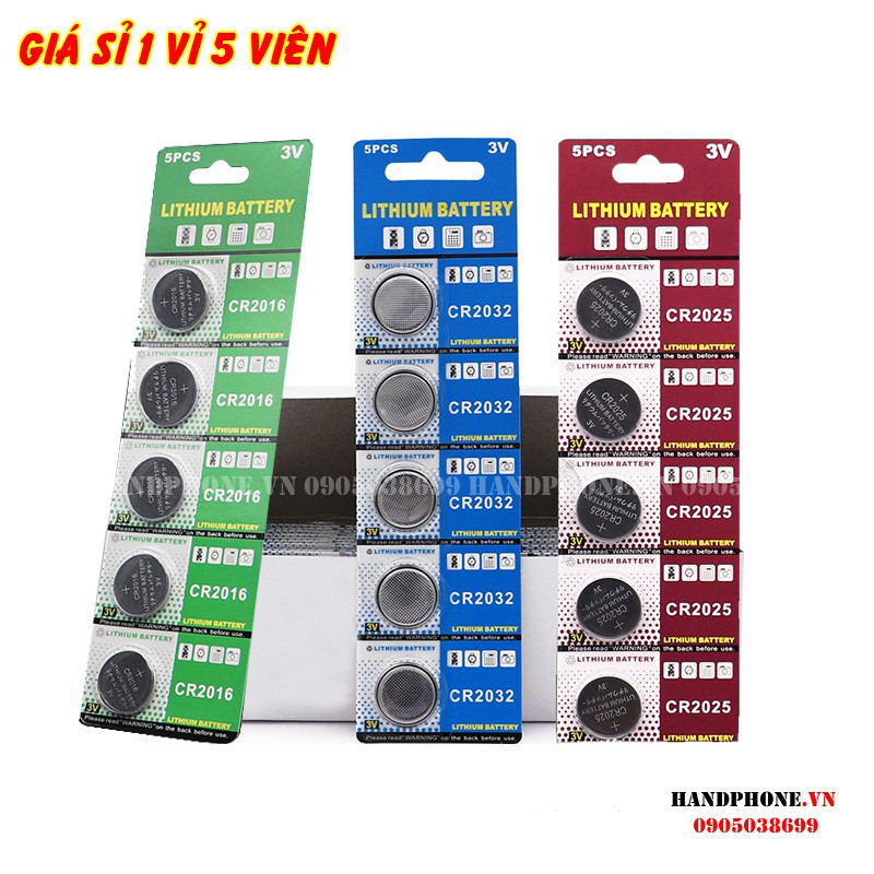 1 vỉ 5 viên pin cúc Lithium 3V CR2032 CR2025 CR2016 pin nút cho Cmos, điều khiển, chìa khóa ô tô, xe máy, cửa cuốn