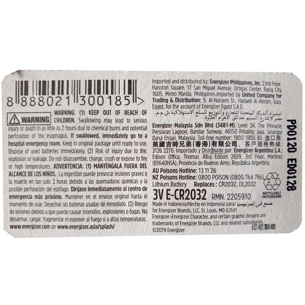 - Mã SP : Energizer cr2032