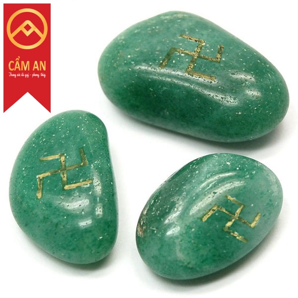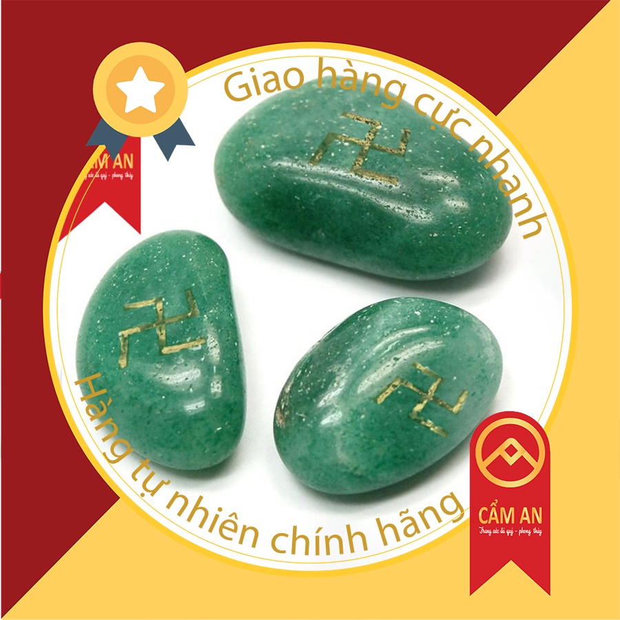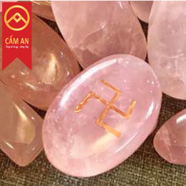 Giới thiệu 1 viên đá TA tu nhien, khắc chữ Vạn có khoan lỗ xỏ dây - sản phẩm Cẩm An .