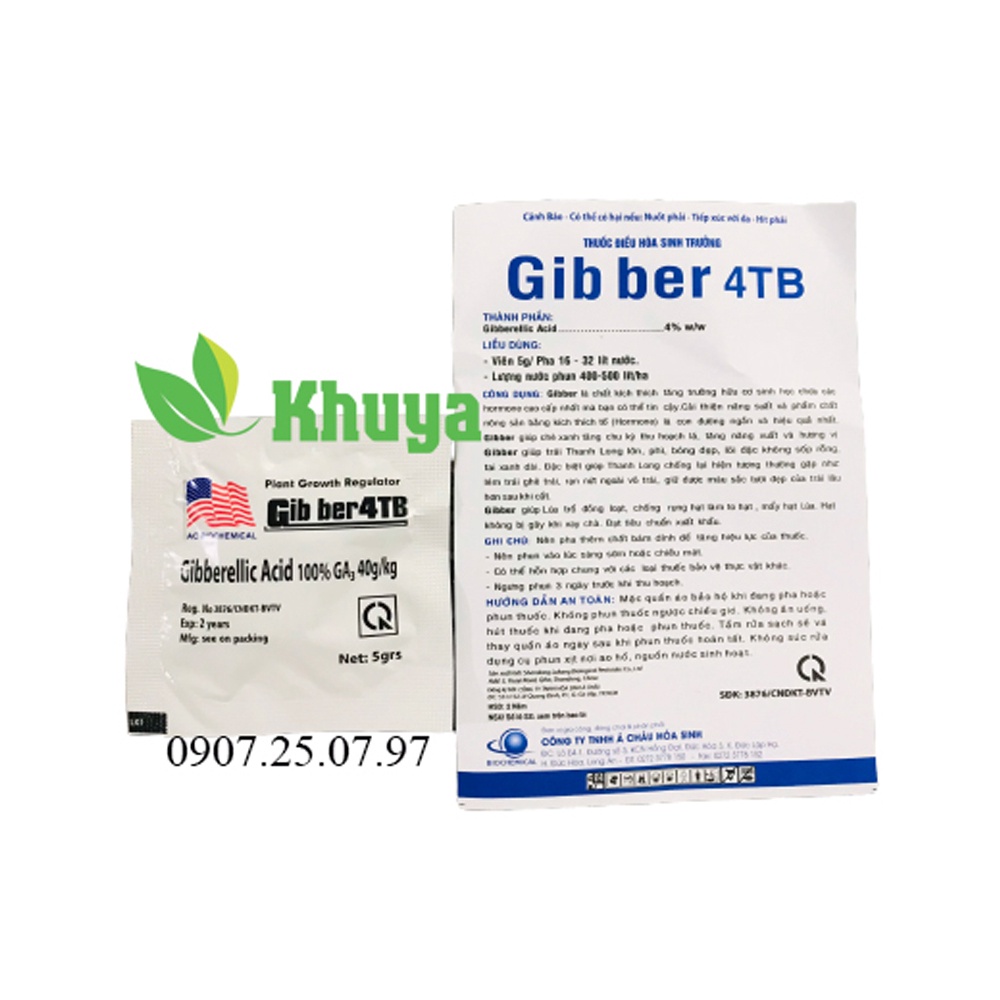 Kích thích tăng trưởng Gibber 4TB GA3 dạng viên sủi 5gramThành phần: