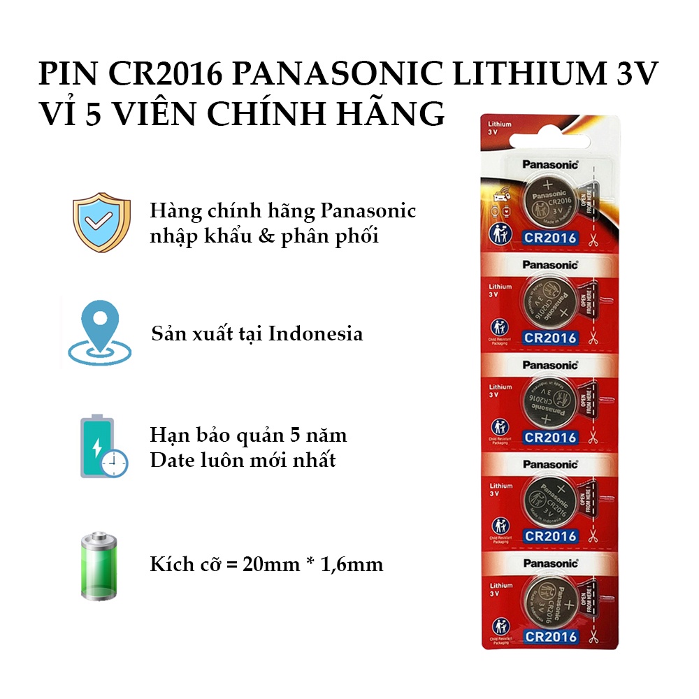 Pin CR2016 Panasonic Lithium 3VKích thước : 20mm * 1,6mm