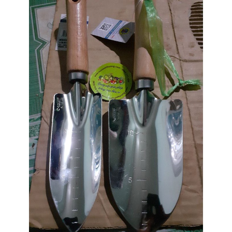 1 Xẻng Inox Làm Vườn, Cán Gỗ Có Chia Cm, C-Mart A0708, A0709, Vừa Tay 25_28cm✔️Xẻng này bên mình là của c-mart đài loan inox có khắc chữ và vạch chia cùng tem mác đầy đủ