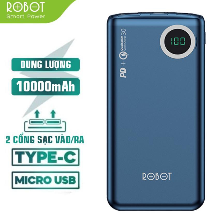Pin sạc dự phòng dung lượng thực 10.000mAh ROBOT 100Q chuẩn sạc nhanh PD/QC 3.0 18W đèn LED hiển thị mức PIN - BẢO HÀNH 12 THÁNGThương hiệu : ROBOT