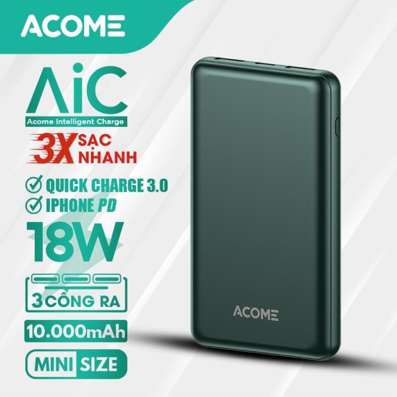 Điện Thoại & Phụ Kiện > Phụ kiện > Sạc dự phòng & Pin > Sạc dự phòng || 10.000mAh Pin Sạc Dự Phòng ACOME AP105 Green PD + QC 3.0 Sạc Nhanh 18W - HÀNG CHÍNH HÃNGCòn hàng