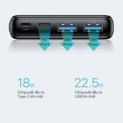 ✔ Nguồn sạc ra 5A, cổng USB đầu ra tích hợp sạc nhanh công suất lớn 22.5W, cổng Type-C tích hợp sạc nhanh công suất 18W, pin sạc dự phòng dung lượng lớn, có thể sạc cùng lúc cho 3 thiết bị.