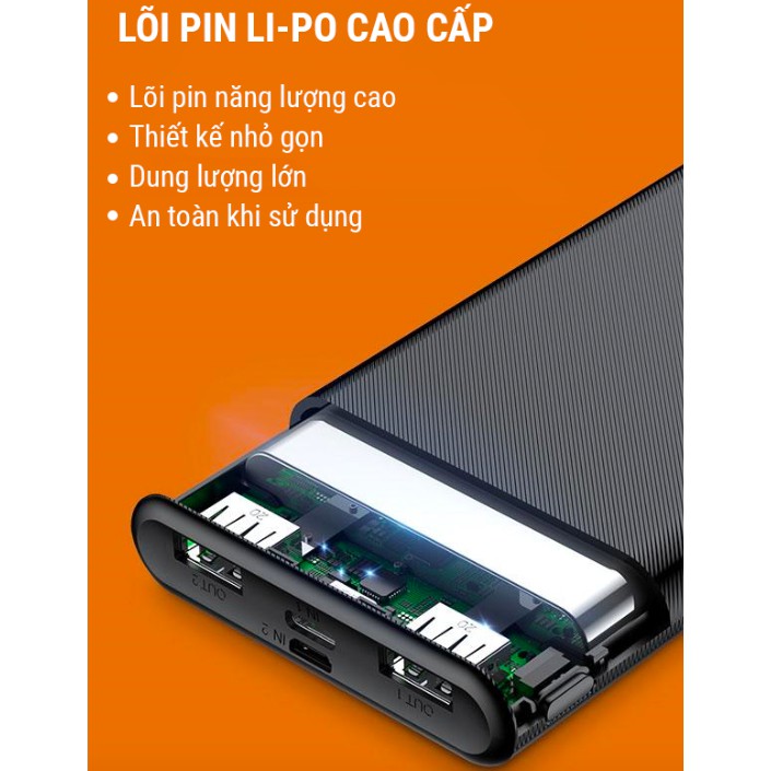 ✔ Dung lượng 10.000mAh, với lõi pin chất lượng cao, hiệu suất thực tế vượt trội hơn so với các sản phẩm thông thường.