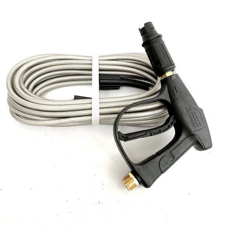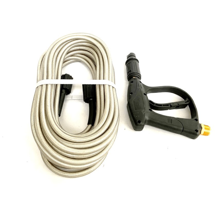 Bộ dây và súng xịt - súng rửa xe áp lực cao là bộ sản phẩm vô cùng tiện dụng cho quý khách có nhu cầu thay mới, bổ sung thay đổi tùy vào mực đích công việc. Bộ sản phẩm này phù hợp với các máy xịt rửa áp lực cao, máy rửa xe áp lực, máy rửa xe mini, máy xịt rửa máy lạnh, vệ sinh nhà cửa, nhà hàng, quán ăn... Bộ sản phẩm vô cùng hữu ích, giúp cho công việc của quý khách đơn giản hơn rất nhiều.Thông số kỹ thuật Dây rửa xe áp lực cao