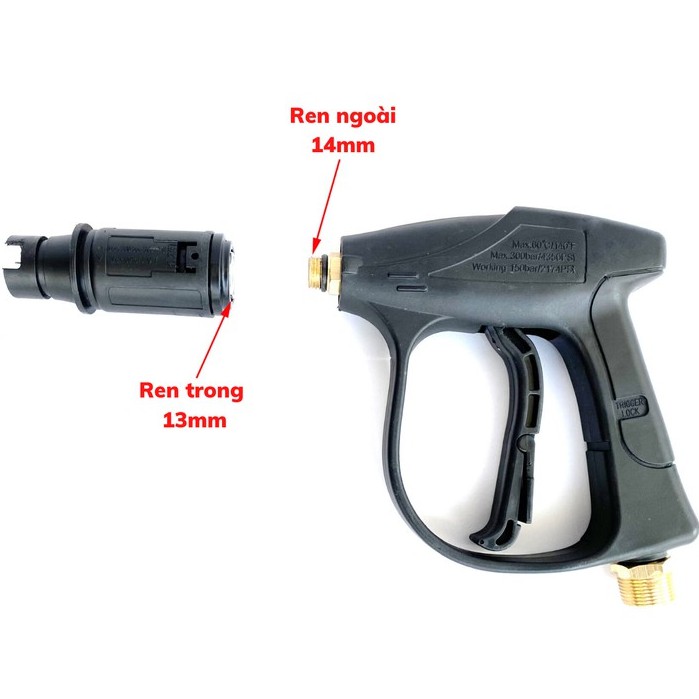 - Ren nối dây: Súng ren ngoài 22mm >> Nối với dây ren trong 22mm