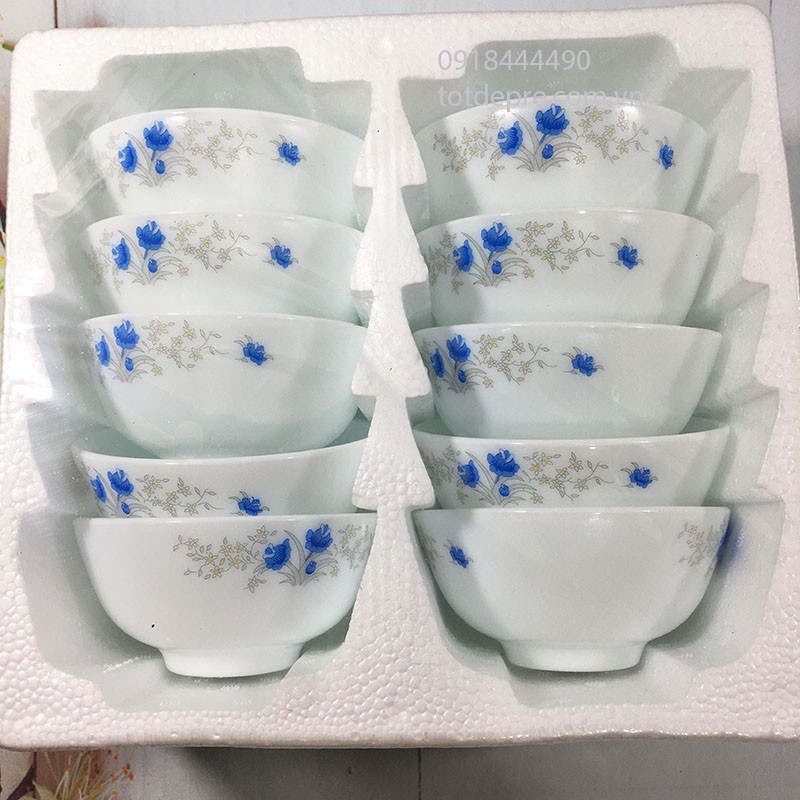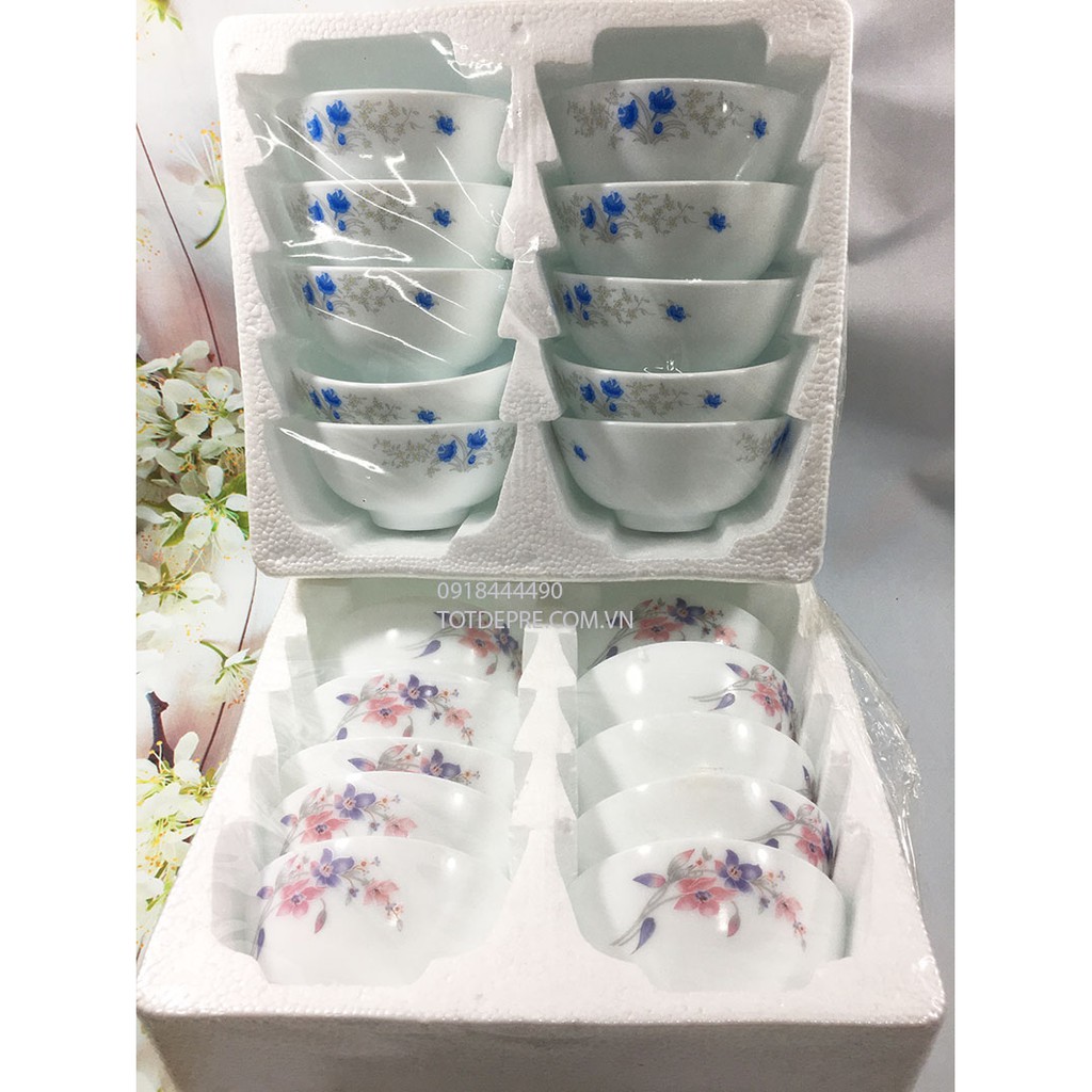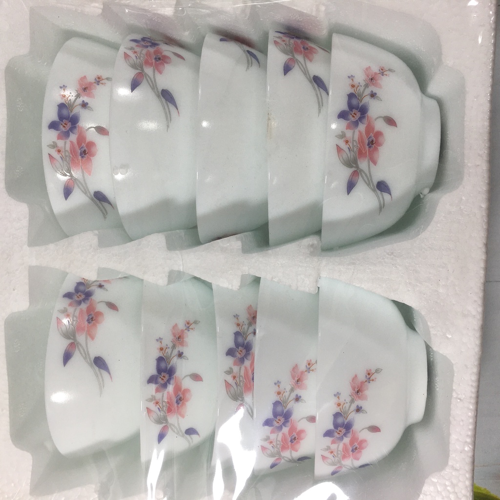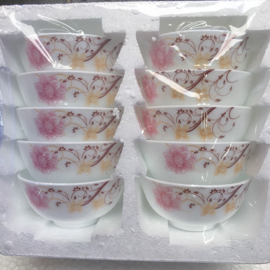 Nhà cửa & Đời sống > Bộ đồ bàn ăn > Tô || Bộ 10 bát ăn cơm sứ trắng ngọc họa tiết hoa hồng - Chén sứ ăn cơmCòn hàng